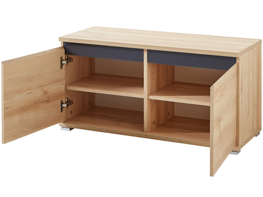 Botník Lissabon značky GERMANIA je vyhotoven v přírodním dekoru bukového dřeva. Vnitřní prostor ukrývá 2 police, které pojmou 8 párů obuvi. Botník má zabudované tlumiče dveří, které snižují opotřebení materiálu. Botník Lissabon bude skvěle ladit s ostatními kousky nábytku ze stejné kolekce nebo s dřevěnými prvky v moderním stylu.