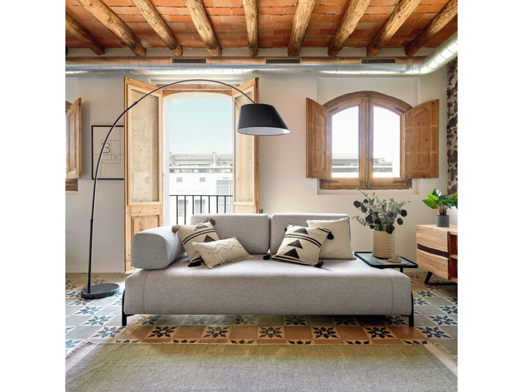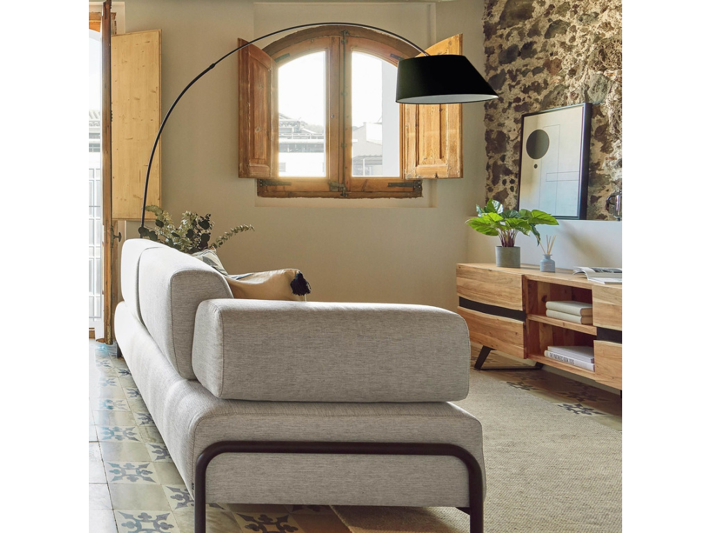 Designovým unikátem je stojací lampa Kave Home May, která upoutá pozornost svým výrazným rozměrem. Elegantní základna z černého mramoru vytváří společně s kovovou konstrukcí atraktivní kontrast, který skvěle doladí moderní interiéry. Bavlněné stínidlo dodává lampě nadčasový vzhled a zároveň rozprostře po místnosti dostatek příjemného světla. Lampa je dostupná také v bílé barvě.