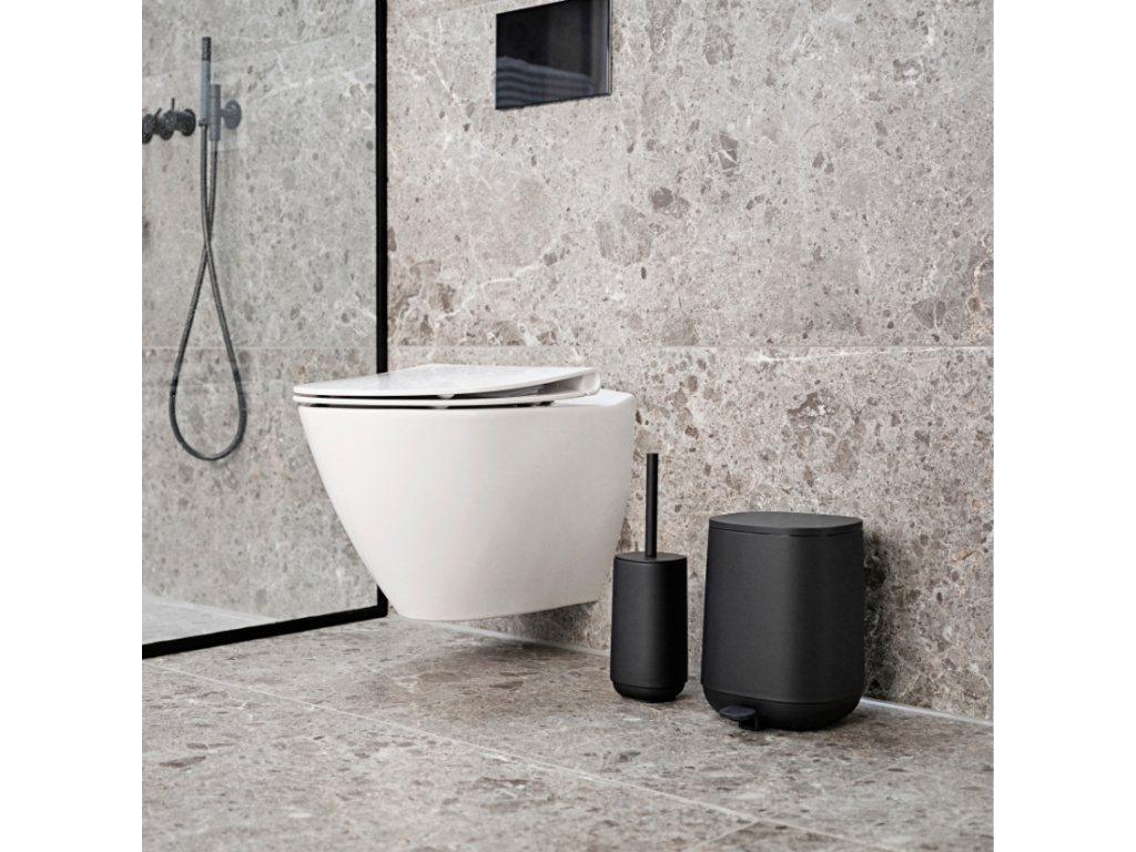 Minimalistický stojan s WC kartáčem Time od dánské značky Zone Denmark diskrétně a esteticky doplní vaši toaletu či koupelnu. Robustní a odolná betonová nádoba, do které se vsadí WC štětka s integrovaným poklopem, vám zajistí hygienické uzavření kartáče i elegantní vzhled. Neutrální černý betonový odstín se snadno kombinuje a hodí se k tmavším i světlejším koupelnám.