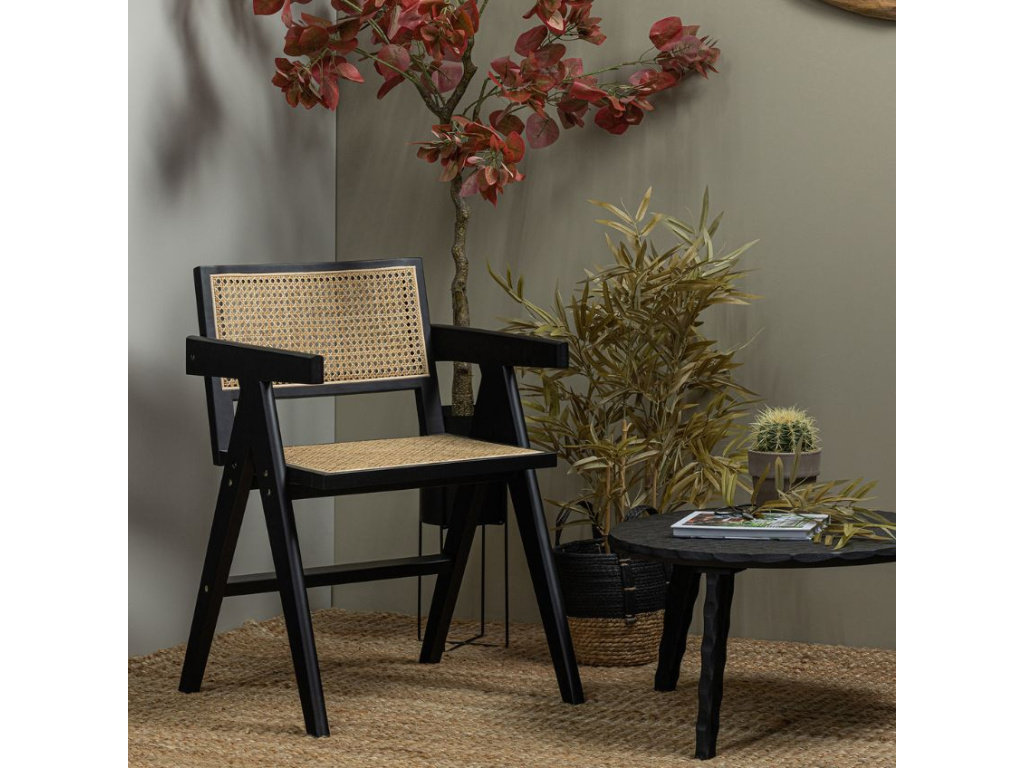 Jídelní židle Ginniena přinese svým designem do vašeho interiéru závan exotiky. Kombinace borovicového dřeva a ratanu prostor perfektně zútulní. Atraktivní je také zvolená kombinace barev - černá konstrukce je doplněna přírodně zbarveným výpletem. Použité dřevo disponuje certifikátem FSC - můžete mít dobrý pocit z toho, že při výrobě produktu bylo myšleno na životní prostředí. Pokud by se vám do vaší domácnosti hodila spíše světlejší barva, zvolte židli Ginniena v přírodně zbarvené variantě.