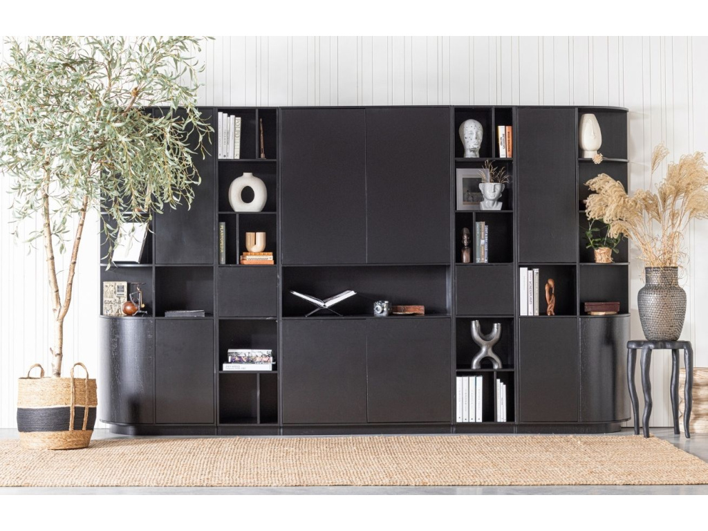 Elegantní a nadčasová - taková je modulární knihovna Fenny. Jednotlivé díly můžete libovolně seskládat a vytvořit tak úložný prostor na míru vašim potřebám. K její výrobě bylo použito černě lakované borovicové dřevo z šetrně obhospodařovaných lesů, které získalo certifikaci FSC. Dvířka knihovny se otevírají a zavírají pomocí tichého systému push to open a proto na nich nenajdete žádné úchytky. Fenny může být použita také jako stylová obýváková stěna.