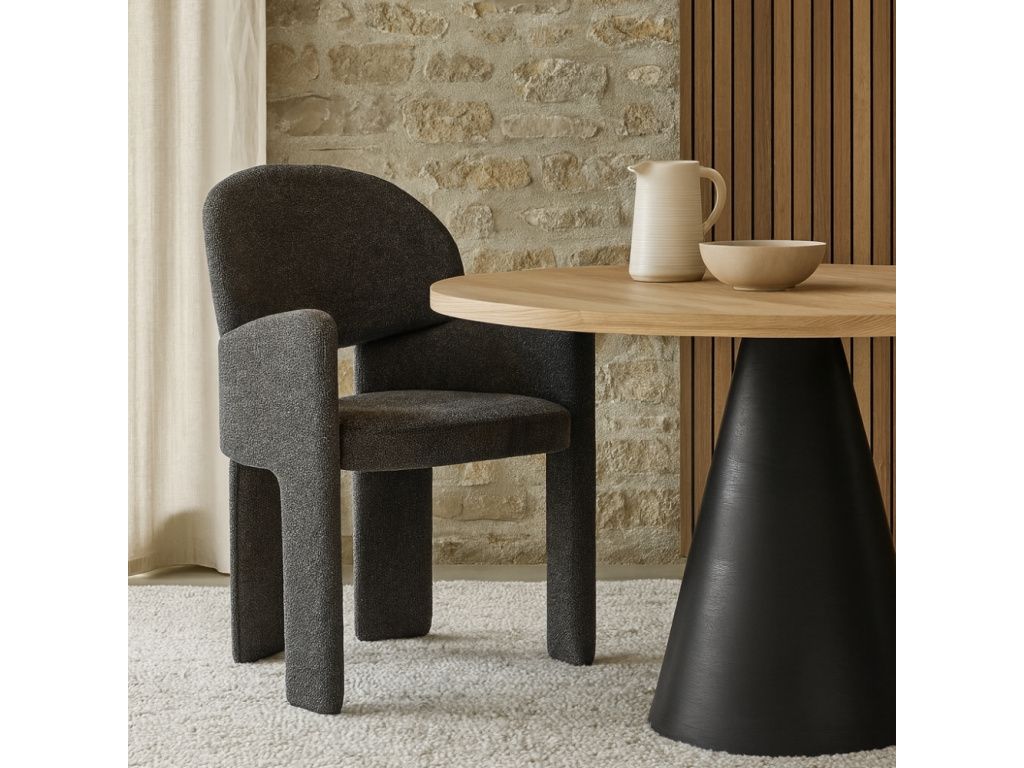 Jídelní židle Aole od značky DAN-FORM vychází ze skandinávské designové tradice. Její sochařská silueta je čalouněná bouclé látkou, a to od opěrky až po podnož, což jí dodává jednotný, elegantní výraz a zároveň zajišťuje vysoký komfort při sezení. Jemně zaoblené linie a plná, měkce působící konstrukce vytvářejí v interiéru pocit moderního luxusu s nadčasovým charakterem. Za návrhem stojí Sanne Protin, CEO a hlavní designérka značky DAN-FORM, která více než 25 let vytváří nábytek inspirovaný severským dědictvím, ale s globálním přesahem. Židle Aole je díky svému výraznému tvaru a pohodlnému provedení ideální volbou nejen k jídelnímu stolu, ale i jako designový akcent k toaletnímu stolku nebo do pracovny.