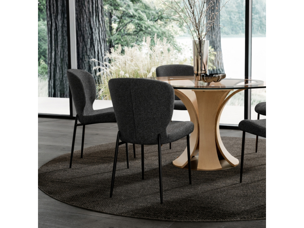 Přidejte do svého interiéru lehkost a vzdušnost černou jídelní židlí Glory. Vyznačuje se svými zaoblenými tvary, díky kterým budete mít dojem, že opěradlo je vytvořeno do tvaru křídel. Glory je čalouněná velmi příjemnou bouclé látkou, která dodá vašemu domovu nádech elegance. Je opatřena kovovou lakovanou podnoží, jejíž zadní část je zajímavě prodloužena až nad sedák, čímž dodává židli luxusní nádech. Skvěle doplní interiér v minimalistickém nebo moderním stylu. Židli Glory si můžete pořídit i v dalších barvách.
