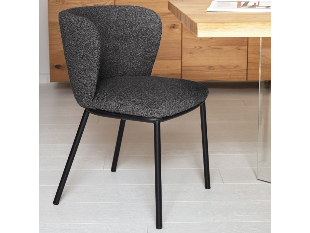 Designová jídelní židle Kave Home Ciselia zaujme na první pohled svým robustním opěradlem a bouclé látkou s texturou. Kombinace černého čalounění s černou kovovou podnoží dodává židli Ciselia elegantní vzhled a maximální pohodlí. Židle bude krásným společníkem v rustikálních interiérech, využití najde také v komerčních prostorech. Například v kavárně u oblíbeného dezertu vám Ciselie ještě více zpříjemní vaši chvilku odpočinku.
