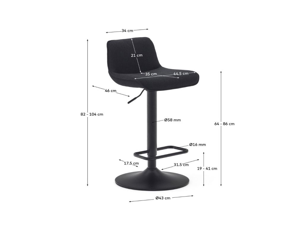 Černá čalouněná barová židle Kave Home Zenda 64-86 cm