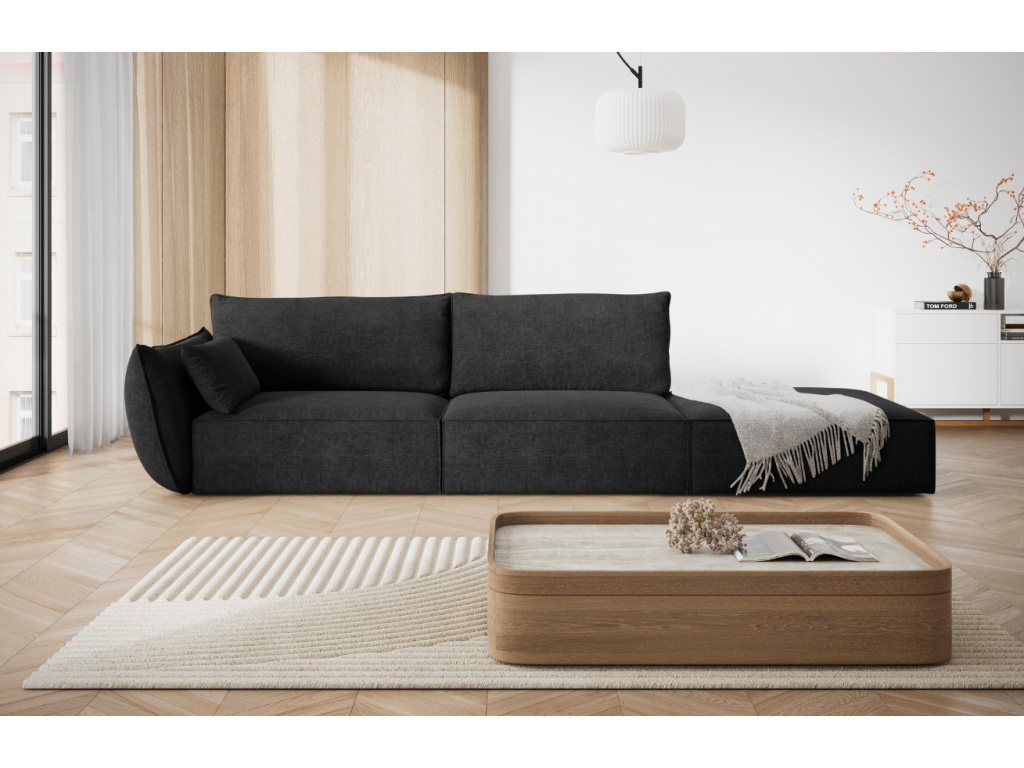 Čtyřmístná pohovka Kaelle od značky Micadoni zaujme elegantním nízkým sezením a tvarovanými područkami, které jí dodávají jedinečný vzhled. Obdélníková silueta s propracovaným lemováním kolem područek a opěradel připomíná tvary polštářů, které poskytují pohodlí a činí pohovku ideálním doplňkem moderního obývacího pokoje. Součástí sezení je malý polštářek, který dodává styl i komfort. Celý povrch je čalouněn žinylkovou tkaninou, která je velmi příjemná až téměř hedvábná na dotek. Probarvené nitě vytvářejí poutavou 3D strukturu se stínovým a lesklým efektem. Tkanina je velmi odolná proti oděru, díky tomu je pohovka vhodná i do komerčních prostor. Tento model lze navíc snadno kombinovat s dalším nábytkem ze stejné kolekce a je dostupným jak v žinylkovém, tak v sametovém provedení.