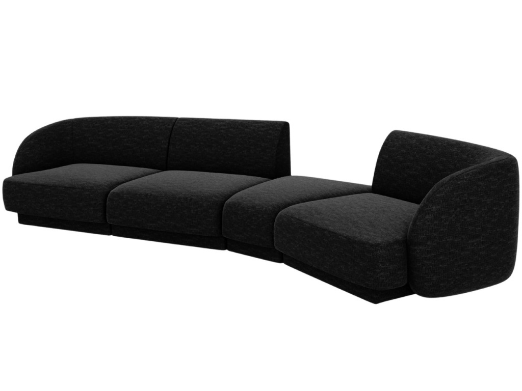 Čtyřmístnou pohovku Miley od značky Micadoni si zamilujete! Její elegantně obloukovité opěradlo vás doslova zve k odpočinku, zatímco jemně zapuštěná základna dodává celému kusu vzdušnost a lehkost. Žinylková potahová látka je velmi příjemná až téměř hedvábná na dotek. Probarvené nitě vytvářejí poutavou 3D strukturu se stínovým a lesklým efektem. Tkanina je velmi odolná proti oděru, díky tomu je pohovka vhodná i do komerčních prostor. Vysoká kvalita a neobyčejný vzhled látky dodávají nábytku sofistikovaný dojem, který umožňuje jeho široké využití v moderním nebo skandinávském stylu. Integrovaný konferenční stolek je nejen designovým prvkem, ale také praktickým místem pro odložení věcí, které chcete mít po ruce, nebo pro umístění dekorací. K pohovce je možné přikoupit další produkty z kolekce Miley. Díky tomu si můžete vytvořit sedací soupravu, kterou je vhodné kombinovat se skleněným nebo dřevěným konferenčním stolkem.