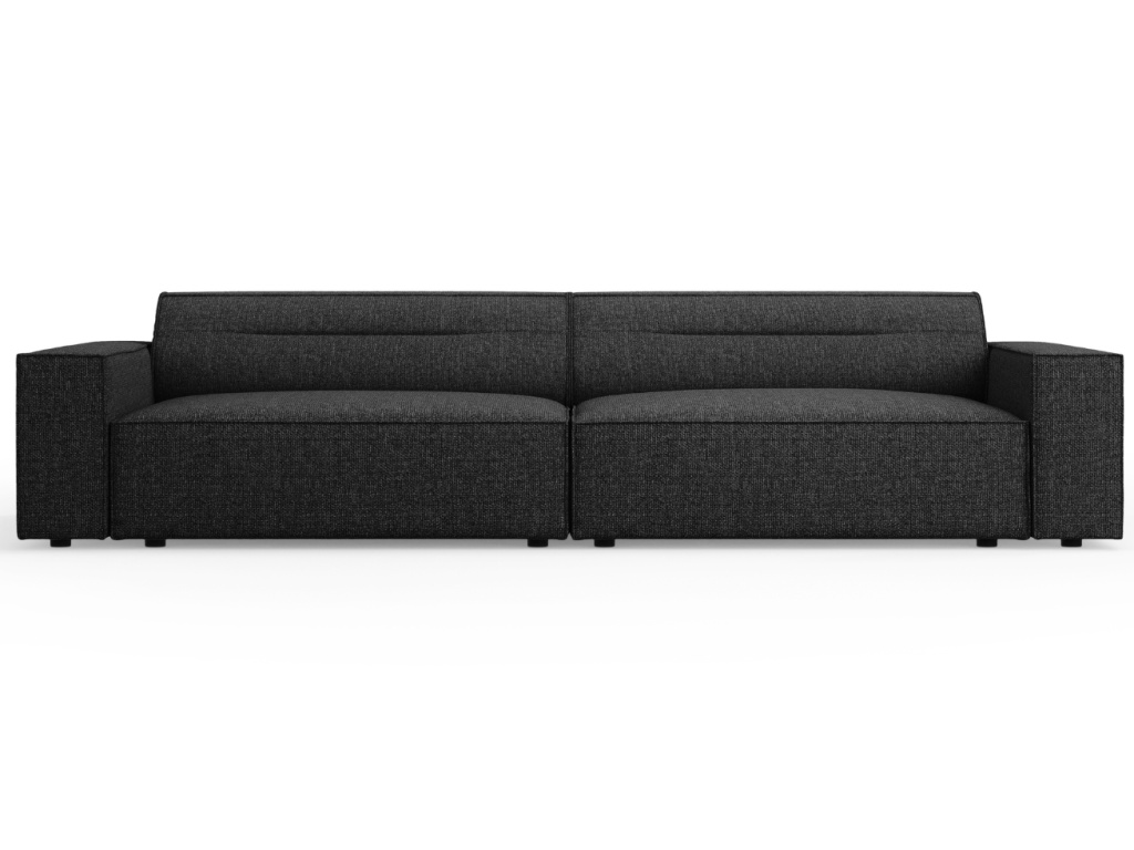Čtyřmístná pohovka Lupus od značky Windsor & Co je výrazný kus nábytku, který v sobě spojuje jednoduchost a eleganci. O vaše maximální pohodlí se postará její žinylkové čalounění v černém odstínu, které je odolné proti oděru a zároveň příjemné na dotek. Probarvené nitě vytvářejí poutavou 3D strukturu se stínovým a lesklým efektem. Také se pyšní certifikátem OEKO-TEX® STANDARD 100, což znamená, že je textilie zcela bez chemikálií. Doplnit ji můžete o křeslo či další pohovky ze stejnojmenné kolekce – nabízíme je v několika barevných provedení. Odpočívejte ve stylu!