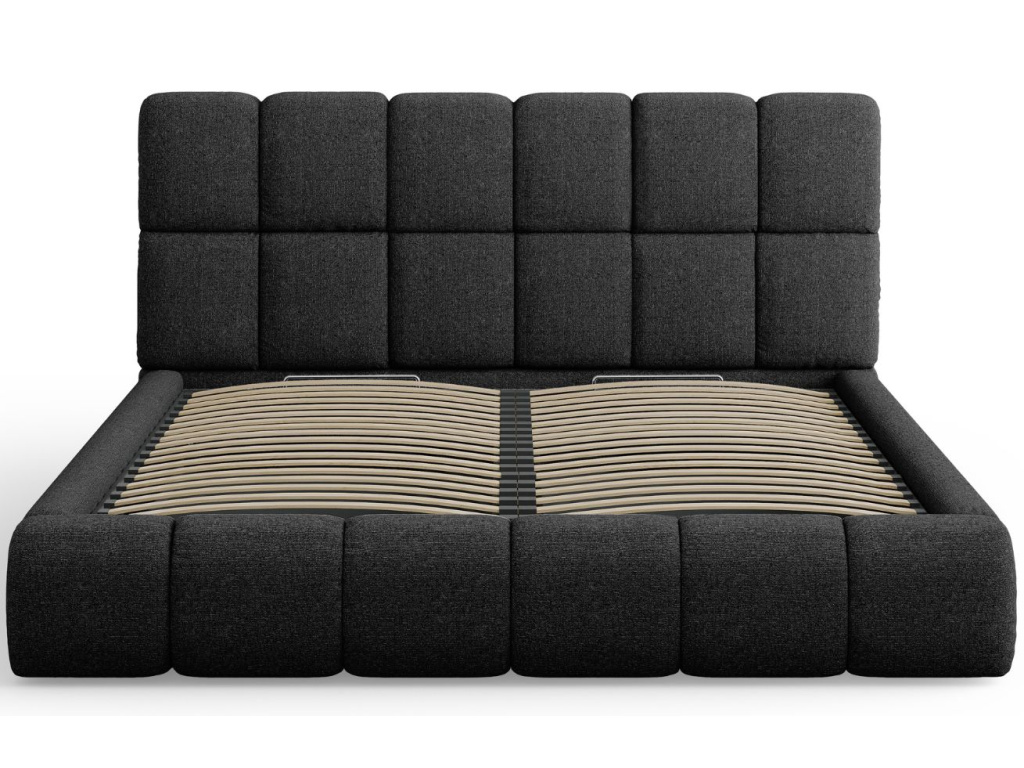 Dvoulůžková postel Bellis vás přenese na pobřeží uklidňující Skandinávie. Měkké čalouněné čelo s geometrickým prošíváním je krásným dekorativním prvkem, který poskytuje pohodlí. Při čtení nebo sledování filmu budete mít kvalitní podpěru pro váš krk nebo záda. Celá konstrukce je čalouněna žinylkovou látkou se zajímavým povrchem s 3D efektem. Je velmi příjemná a hedvábná na dotek. Nerovnoměrně probarvené nitě vytvářejí poutavou strukturu se stínovým a lesklým efektem. Vysoká kvalita a výrazný charakter materiálu dodávají nábytku atraktivní vzhled, což umožňuje jeho široké využití v minimalistickém nebo skandinávském stylu. Nezbytným prvkem lůžka je úložný prostor pod výklopným roštem, který vám pomůže efektivně využít prostor a udržet v ložnici pořádek. K lůžku doporučujeme zakoupit matraci od značky Micadoni.