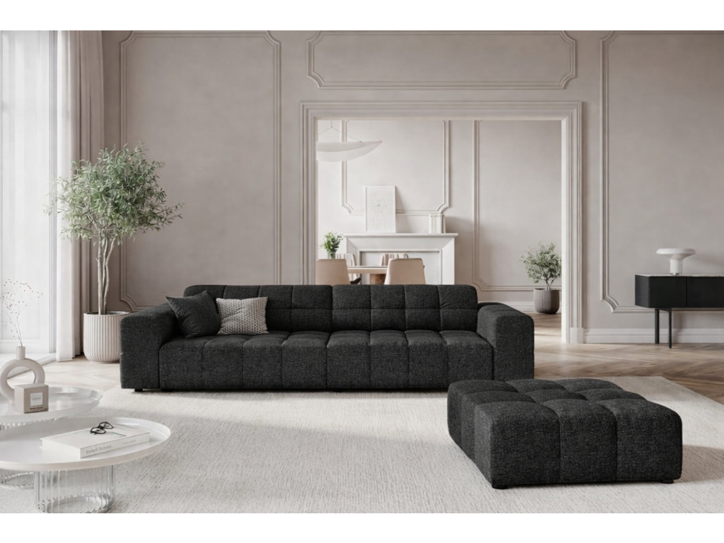 Podnožka Chicago od značky Cosmopolitan Design bude skvělým doplňkem k pohovkám či křeslu ze stejnojmenné kolekce. Stejně jako pohovky i ona zaujme charakteristickým prošíváním, které jí dodává nádech luxusu. Žinylkové čalounění v černém odstínu je odolné proti oděru a zároveň velmi příjemné na dotek. Probarvené nitě vytvářejí poutavou 3D strukturu se stínovým a lesklým efektem. Tento skvostný kus nábytku nejen oslní na první pohled, ale především zútulní váš interiér ve skandinávském nebo glamour stylu. Chicago vám poslouží jako podnožka pro vaše unavené nohy nebo jako další možnost sezení pro rodinu či přátelé. Relaxujte ve stylu!