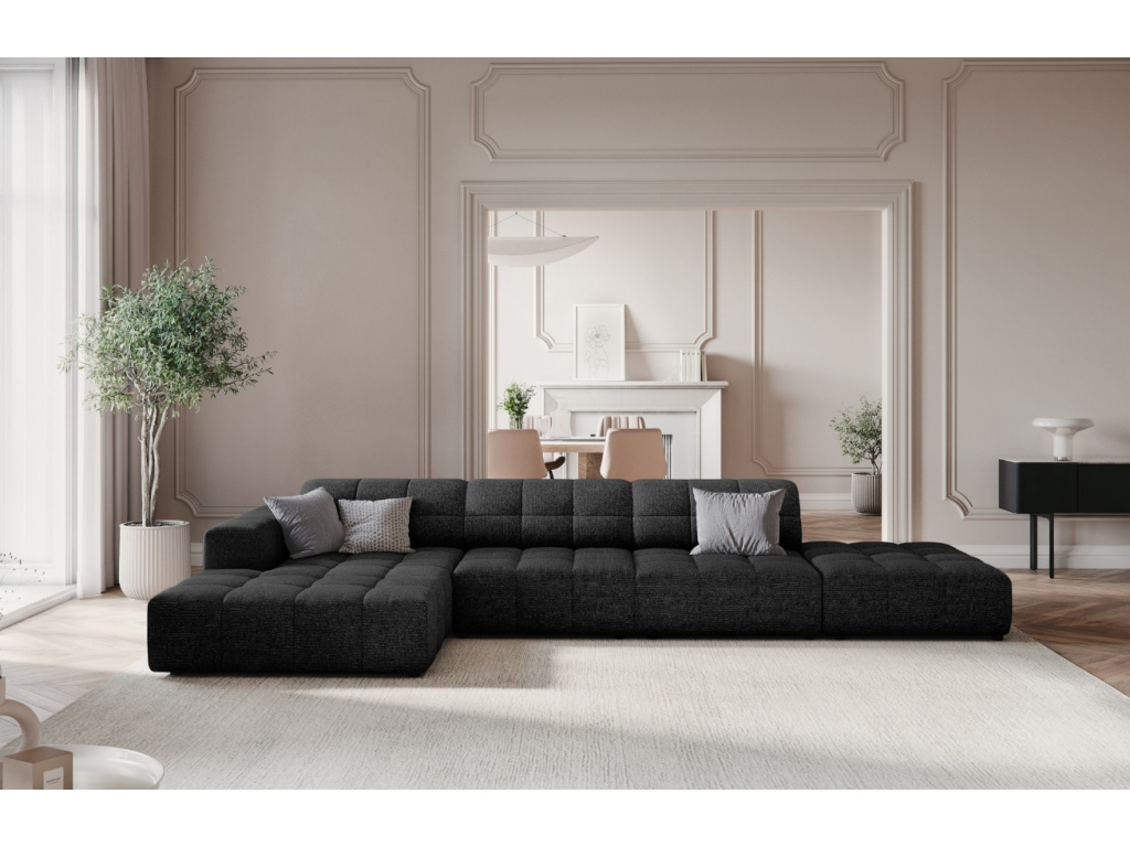 Rohovou pohovku Chicago od značky Cosmopolitan Design si zamilujete! O vaše maximální pohodlí se postará její žinylkové čalounění v černém odstínu, které je odolné proti oděru a zároveň příjemné na dotek. Probarvené nitě vytvářejí poutavou 3D strukturu se stínovým a lesklým efektem. Pohovka Chicago svými proporcemi nabídne prostorné a pohodlné místo až pro 5 osob. Pro sjednocení vašeho sedacího koutu doporučujeme pohovku doplnit také stylovým křeslem nebo podnožkou ze stejnojmenné série. Všechny produkty nabízíme v několika barvách. Odpočiňte si a relaxujte ve stylu!