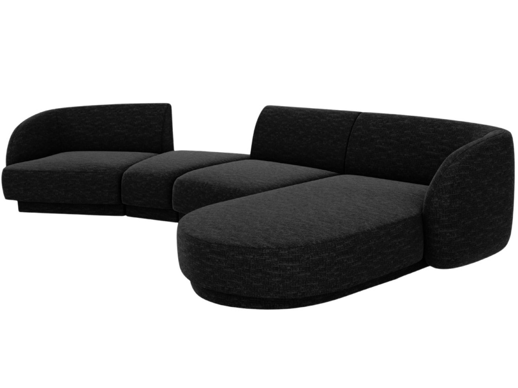 Čtyřmístnou rohovou pohovku Miley od značky Micadoni si zamilujete! Její elegantně obloukovité opěradlo vás doslova zve k odpočinku, zatímco jemně zapuštěná základna dodává celému kusu vzdušnost a lehkost. Žinylková potahová látka je velmi příjemná až téměř hedvábná na dotek. Probarvené nitě vytvářejí poutavou 3D strukturu se stínovým a lesklým efektem. Tkanina je velmi odolná proti oděru, díky tomu je pohovka vhodná i do komerčních prostor. Vysoká kvalita a neobyčejný vzhled látky dodávají nábytku sofistikovaný dojem, který umožňuje jeho široké využití v moderním nebo skandinávském stylu. Integrovaný konferenční stolek je nejen designovým prvkem, ale také praktickým místem pro odložení věcí, které chcete mít po ruce, nebo pro umístění dekorací. K pohovce je možné přikoupit další produkty z kolekce Miley. Díky tomu si můžete vytvořit sedací soupravu, kterou je vhodné kombinovat se skleněným nebo dřevěným konferenčním stolkem.