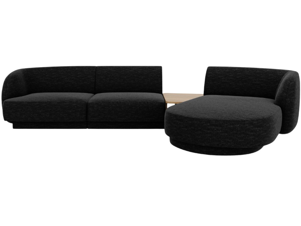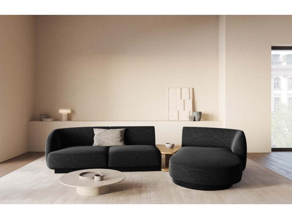 Rohovou pohovku Miley od značky Micadoni si zamilujete! Její elegantně obloukovité opěradlo vás doslova zve k odpočinku, zatímco jemně zapuštěná základna dodává celému kusu vzdušnost a lehkost. Žinylková potahová látka je velmi příjemná až téměř hedvábná na dotek. Probarvené nitě vytvářejí poutavou 3D strukturu se stínovým a lesklým efektem. Tkanina je velmi odolná proti oděru, díky tomu je pohovka vhodná i do komerčních prostor. Vysoká kvalita a neobyčejný vzhled látky dodávají nábytku sofistikovaný dojem, který umožňuje jeho široké využití v moderním nebo skandinávském stylu. Integrovaný konferenční stolek je nejen designovým prvkem, ale také praktickým místem pro odložení věcí, které chcete mít po ruce, nebo pro umístění dekorací. K pohovce je možné přikoupit další produkty z kolekce Miley. Díky tomu si můžete vytvořit sedací soupravu, kterou je vhodné kombinovat se skleněným nebo dřevěným konferenčním stolkem.