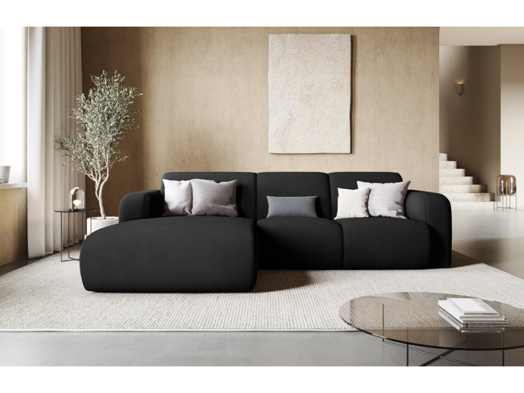 Luxus, maximální pohodlí a moderní design – to vše do vaší společenské místnosti přinese rohová pohovka Lola od značky Windsor & Co! O váš dokonalý odpočinek se postará čalounění ze strukturované látky v černém provedení, které je měkké na dotek. Látka je opatřena voděodolnou vrstvou, která představuje skvělého pomocníka pro ochranu povrchu před znečištěním. Pohovka Lola svými proporcemi nabídne prostorné a pohodlné místo pro 4 osoby. Pro sjednocení vašeho sedacího koutu doporučujeme pohovku doplnit také stylovým křeslem a podnožkami ze stejnojmenné série. Všechny produkty nabízíme v několika barvách. Odpočiňte si a relaxujte ve stylu!