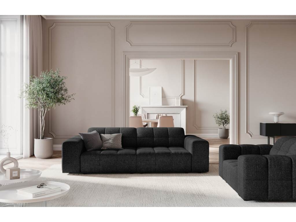 Třímístná pohovka Chicago od značky Cosmopolitan Design vás na první pohled oslní charakteristickým prošíváním, které vybízí k nespoutané relaxaci. Žinylkové čalounění v černém odstínu je odolné proti oděru a zároveň velmi příjemné až téměř hedvábné na dotek. Probarvené nitě vytvářejí poutavou 3D strukturu se stínovým a lesklým efektem. Atraktivní design s nádechem luxusu a klasiky jsou přesné známky pohovky Chicago. Tento skvostný kus nábytku nejen zaujme na první pohled, ale především zútulní váš interiér ve skandinávském nebo glamour stylu. Kolekce Chicago osloví každého, kdo hledá designové inovace a nebojí se experimentovat. A že není černá barva tou pravou pro vás? Pohovky jsou dostupné v několika různých variantách!