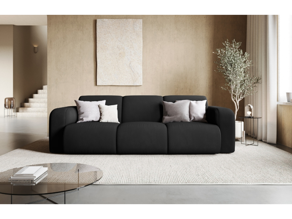 Třímístná pohovka Lola od značky Windsor & Co je výrazný kus nábytku, který v sobě spojuje jednoduchost a eleganci. O vaše pohodlí se postará čalounění ze strukturované látky v černém provedení, které je měkké na dotek. Látka je opatřena voděodolnou vrstvou, která představuje skvělého pomocníka pro ochranu povrchu před znečištěním. Pohovka Lola svými proporcemi nabídne nejen prostorné a pohodlné místo, ale zamilujete si také její čisté linie a nadčasový vzhled. Pro sjednocení vašeho sedacího koutu doporučujeme pohovku doplnit také stylovým křeslem či podnožkami ze stejnojmenné série. Všechny produkty nabízíme v několika barvách. Odpočiňte si a relaxujte ve stylu!