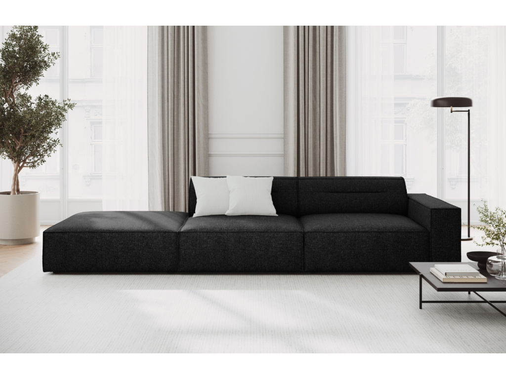 Třímístná pohovka Lupus od značky Windsor & Co je výrazný kus nábytku, který v sobě spojuje jednoduchost a eleganci. O vaše maximální pohodlí se postará její žinylkové čalounění v černém odstínu, které je odolné proti oděru a zároveň příjemné na dotek. Probarvené nitě vytvářejí poutavou 3D strukturu se stínovým a lesklým efektem. Také se pyšní certifikátem OEKO-TEX® STANDARD 100, což znamená, že je textilie zcela bez chemikálií. Doplnit ji můžete o křeslo či další pohovky ze stejnojmenné kolekce – nabízíme je v několika barevných provedení. Odpočívejte ve stylu!