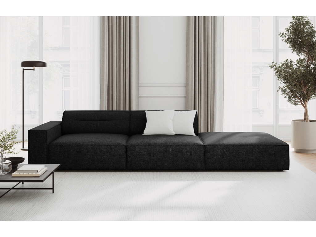 Třímístná pohovka Lupus od značky Windsor & Co je výrazný kus nábytku, který v sobě spojuje jednoduchost a eleganci. O vaše maximální pohodlí se postará její žinylkové čalounění v černém odstínu, které je odolné proti oděru a zároveň příjemné na dotek. Probarvené nitě vytvářejí poutavou 3D strukturu se stínovým a lesklým efektem. Také se pyšní certifikátem OEKO-TEX® STANDARD 100, což znamená, že je textilie zcela bez chemikálií. Doplnit ji můžete o křeslo či další pohovky ze stejnojmenné kolekce – nabízíme je v několika barevných provedení. Odpočívejte ve stylu!