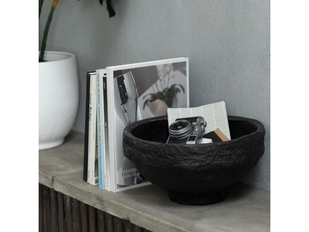 Představujeme vám dekorační mísu Mochos od značky J-line. Je vyrobena z černého papírmaše, což má za následek texturovaný povrch, díky kterému působí neopracovaným dojmem. Lze ji využít jako mísu na ovoce, na odkládání klíčů, dekorací nebo drobných předmětů, pro které chcete najít ideální místo.