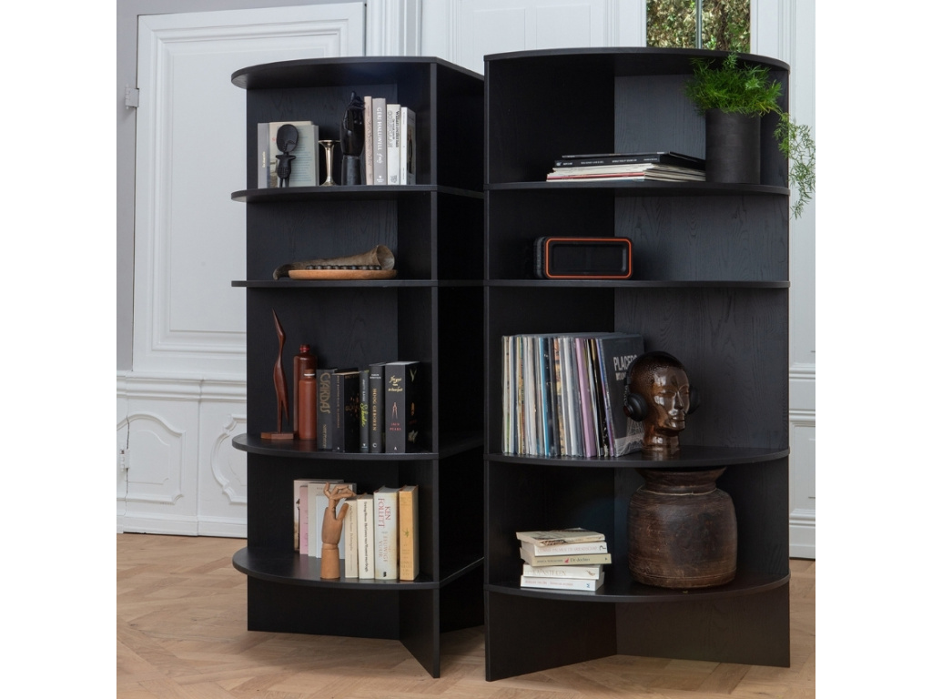 Černá půlkruhová knihovna Richard zaujme svým neotřelým originálním designem. Elegantní korpus z masivního jasanového dřeva tvoří atraktivní celek, který rozzáří každý moderní interiér. Příjemnou vlastností jsou 4 úložné přihrádky, které poskytnou dostatek úložného prostoru pro váš inventář. Vybavte si svůj domov i dalšími kousky ze série Richard. K získání ještě většího úložiště doporučujeme spojit dvě tyto knihovny k sobě.