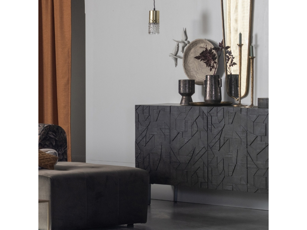Komoda Country upoutá pozornost svými vyřezávanými dvířky, každý kus má unikátní dřevěnou strukturu a je tedy originál. Korpus z masivního mangového dřeva podpírá kovová černě lakovaná podnož a za krásnou fasádou schovává bohatý úložný prostor. Vnitřní prostor je v polovině rozdělen policí, kterou lze v případě potřeby odebrat. Komoda se bude skvěle vyjímat v moderních i rustikálně laděných interiérech.