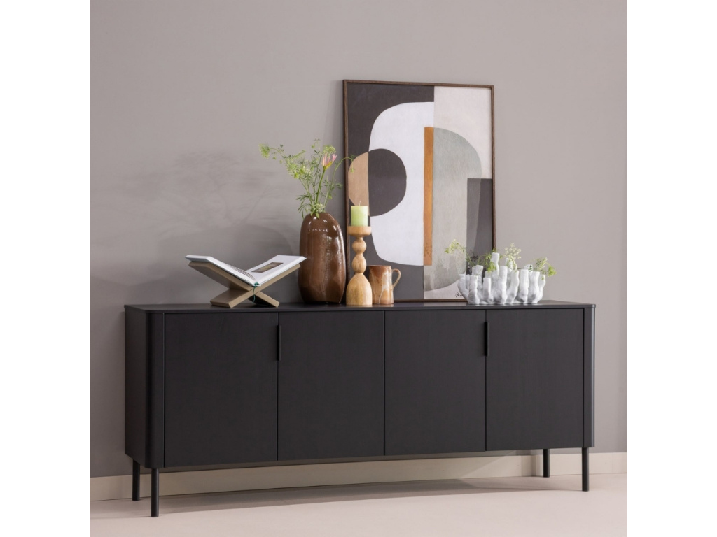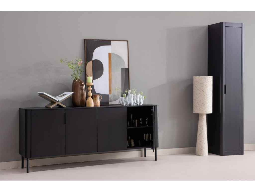 Gunnar je designovka, která má charisma. Je vyrobena z černě lakovaného, borovicového dřeva, které dodá interiéru hloubku a klid. Za jejími dvířky najdete prostor pro všechno, co chcete mít po ruce, ale ne nutně na očích – od nádobí až po krabice s drobnostmi, sezónní dekorace nebo rodinná fotoalba. Horní deska se naopak může proměnit v jakési dekorativní zátiší pro designovou vázu, staré vinylové desky, šperkovnici, knížky nebo oblíbenou pokojovku. Gunnar má certifikaci FSC, který je zárukou, že bylo dřevo získáno šetrně, s ohledem na ekologické, sociální a ekonomické aspekty. A že je to jenom obyčejná komoda? Kdepak. Je to kousek, který uspořádá váš prostor i myšlenky.