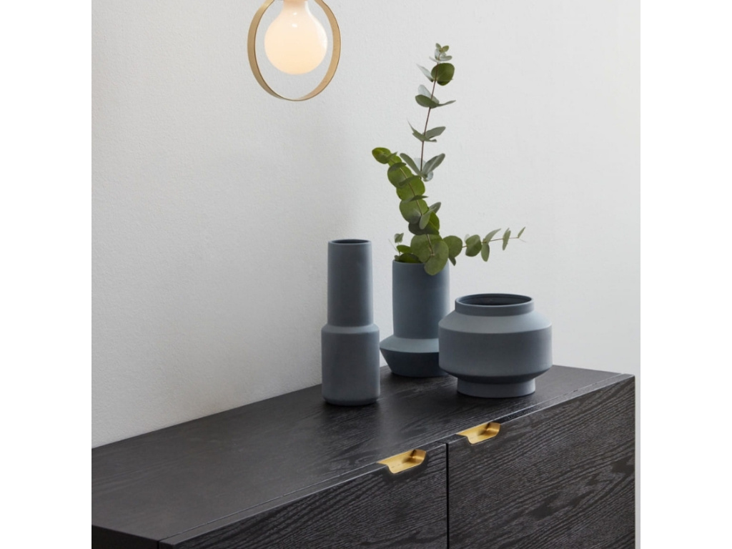 Komoda Hübsch Norm zaujme svým moderním a nadčasovým designem. Kombinace výrazné černé barvy jasanové dýhy a mosazně lakovaných kovových úchytek vnese do místnosti silný charakter a nádech elegance. Masivní ráz komody je odlehčen útlou podnoží z jasanového dřeva, jenž je zakončena mosazným detailem. Norm vynikne ve vaší ložnici i obývacím pokoji.