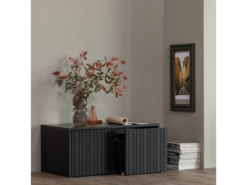 Černá dřevěná lavice Gravia ze stejnojmenné řady nábytku nabízí jedinečný design a velice praktický úložný prostor ve dvou prostorných zásuvkách, které jsou navíc opatřeny pojízdnými kolečky. Využívat ji lze buď jako lavici, nebo komodu – rozhodnutí je jen na vás. Zajímavý motiv žebrování podtrhne celkový dojem lavice a dodá jí elegantní a rustikální vzhled. Černý odstín odstín borovicového dřeva vnese do vašeho domova pocit tepla a útulna. Jemná inspirace retro stylem dodá celému prostoru osobitý charakter.