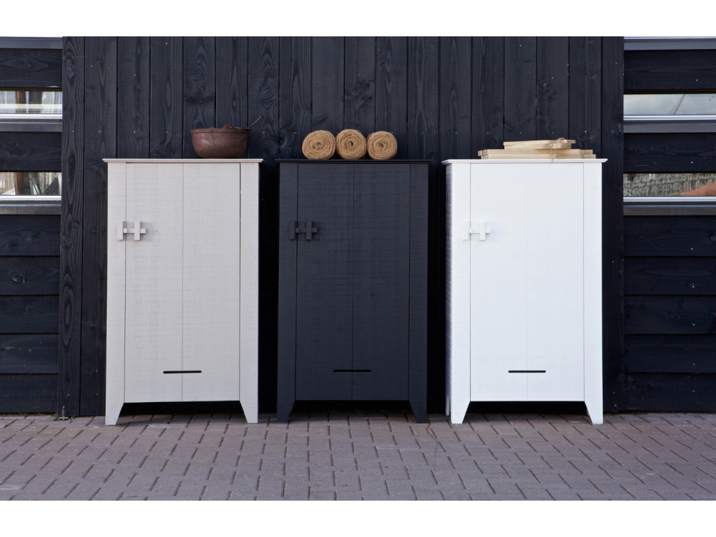 Gojin od značky Hoorns je moderní a elegantní skříň. Tento kus nábytku by neměl chybět v žádném interiéru. Skříň je vyrobena z hrubě řezaného borovicového dřeva v matném černém finiši. Za dvířky se skrývají 4 police s dostatkem prostoru pro všechen váš inventář, ať už to je oblečení v případě umístění v ložnici, nebo dokumenty při umístění v kanceláří. Je vyroben z borovicového dřeva, které se pyšní FSC certifikací. Díky té si můžete být jisti, že výroba produktu nezatížila životní prostředí, protože použité dřevo pochází z šetrně obhospodařovaných lesů . Součástí balení je i detailní a srozumitelný montážní návod.