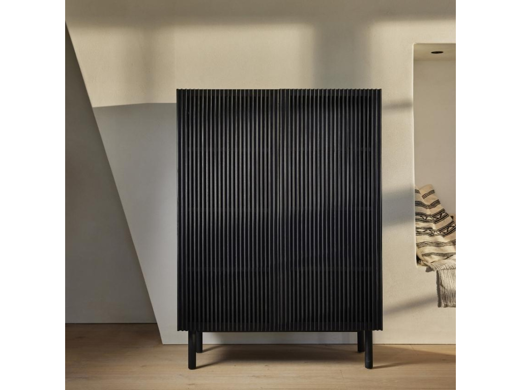 Designová dětská skříň Quax Hai-No-Ki je inspirována japonskými vzdušnými interiéry. Elegantní černě lakovaná dýhovaná MDF krásně ladí s kresbou jasanového dřeva, ze kterého je vyrobena podnož. Skříň je možné doplnit o látkové úložné boxy podle potřeby. Skříň je vybavena několika policemi, které je možné přesouvat podle potřeby.