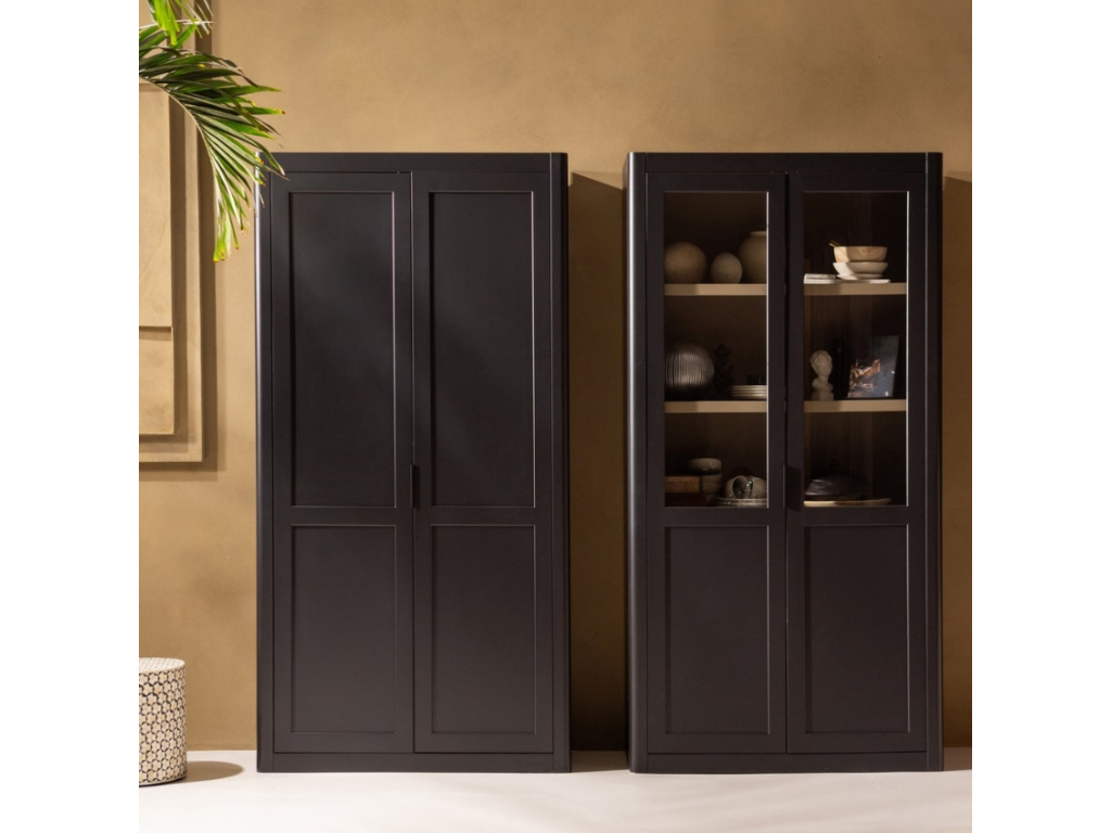 Vitrína Gunnar je stylový úložný kousek, který kombinuje masivní borovicové dřevo s matně černým povrchem a vytváří tak výrazný, nadčasový design. Díky proskleným dvířkům elegantně vystavíte vaše oblíbené knihy, keramiku nebo dekorace, zatímco uvnitř dřevěných dvířek najdete praktický úložný prostor pro věci, které nechcete mít na očích. Minimalistické linie a kvalitní zpracování s FSC certifikovaným dřevem zaručují, že Gunnar zapadne jak do moderních, tak do industriálně nebo rustikálně laděných interiérů. Tento kousek není jen nábytek – je to designový prvek, který dá vašemu domovu osobitost a řád.