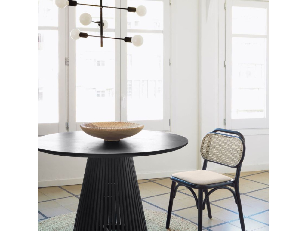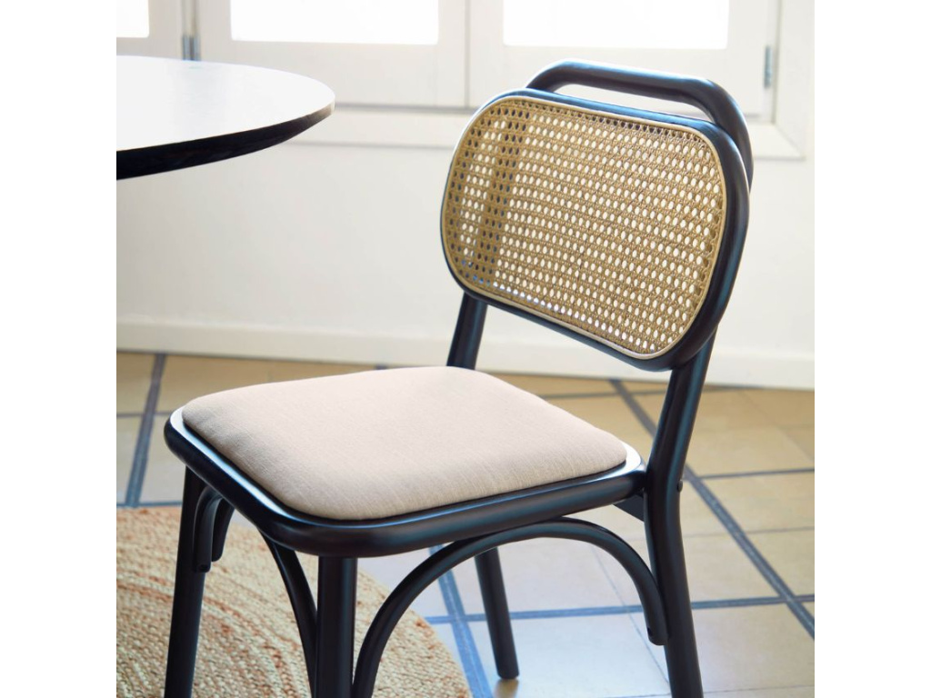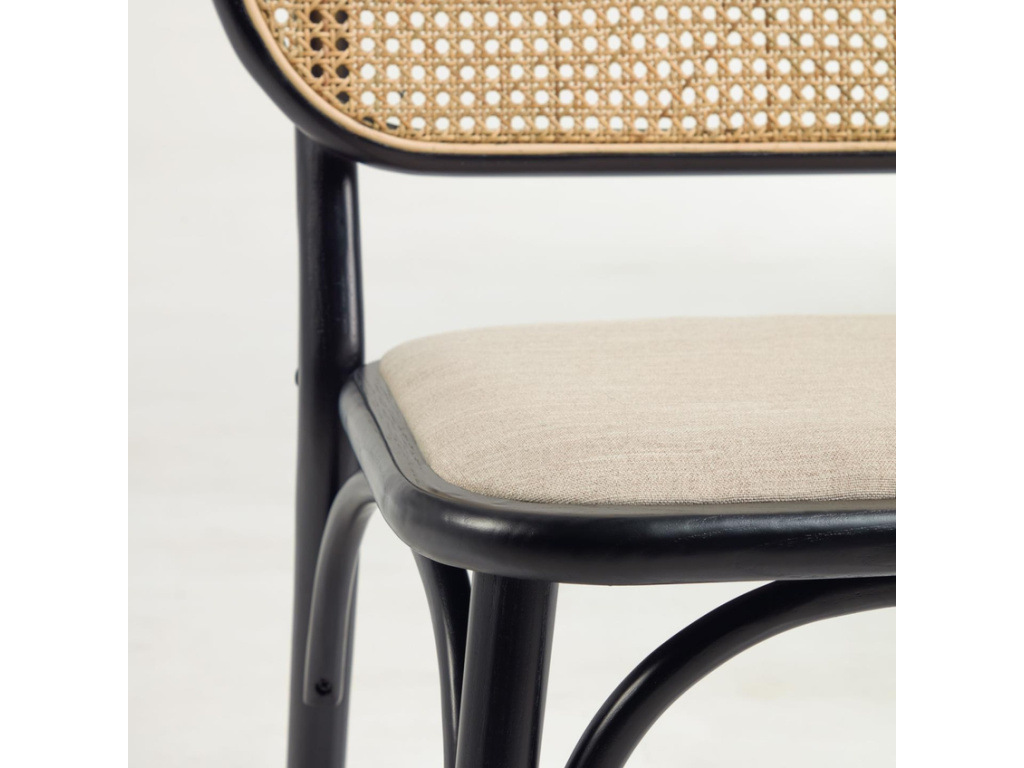 Dubová jídelní židle Kave Home Doriane v černé barvě vás zaujme svou kombinací moderního provedení a klasických a retro prvků. Konstrukci z dubového dřeva doplňuje ručně tkané ratanové opěradlo a sedák s jemným látkovým čalouněním s efektem lnu. Dřevo použité na tuto židli je šetrné k životnímu prostředí, jelikož pochází z udržitelných lesů, což dokazuje certifikát FSC. Dodejte své jídelně styl a komfort s židlí Doriane.