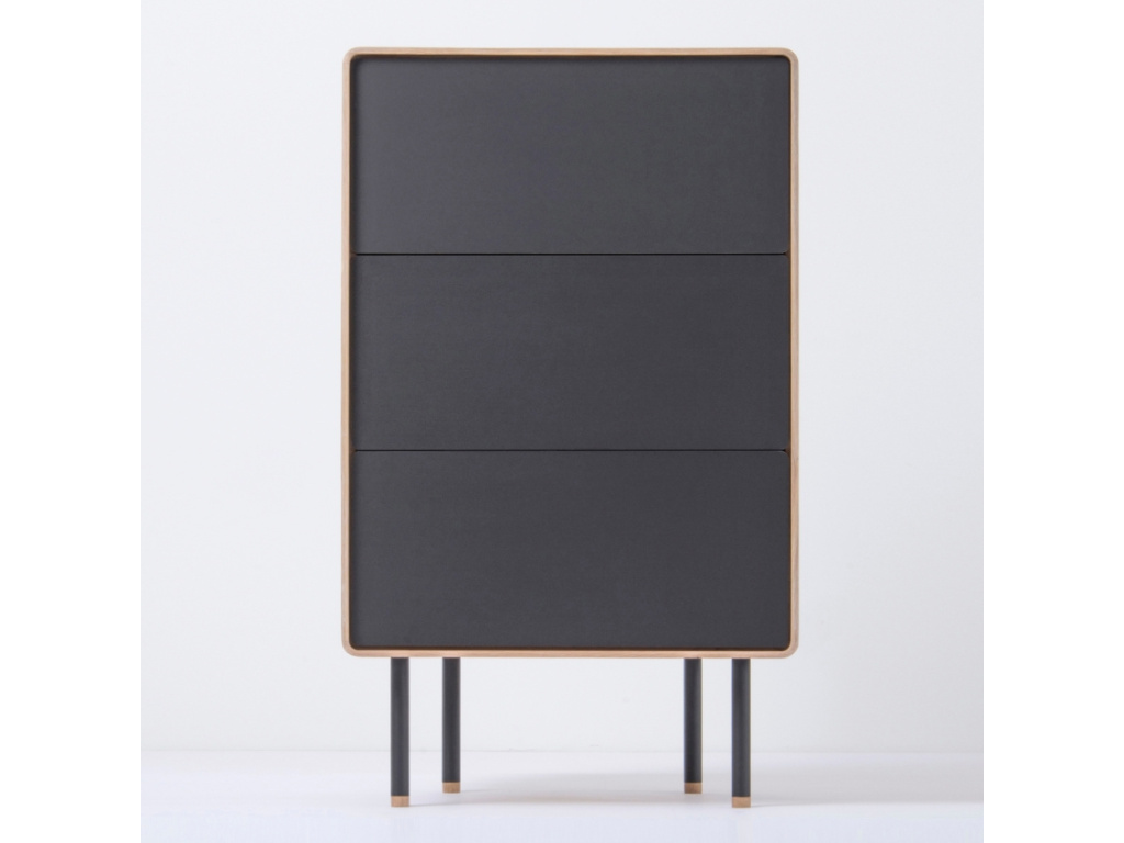 Komoda Fina od značky Gazzda bude ve vaší domácnosti vypadat perfektně. Její konstrukce je vyrobena z masivního naolejovaného dubového dřeva, kterou doplňují černé zásuvky z MDF. Minimalistická ocelová podnož působí vzdušným dojmem a celkově ji dodává na eleganci. Komoda nabízí dostatek úložného prostoru – disponuje třemi prostornými zásuvkami, kam pohodlně umístíte oblečení, ložní prádlo nebo cennosti. Udělejte svůj interiér útulnější s komodou Fina!