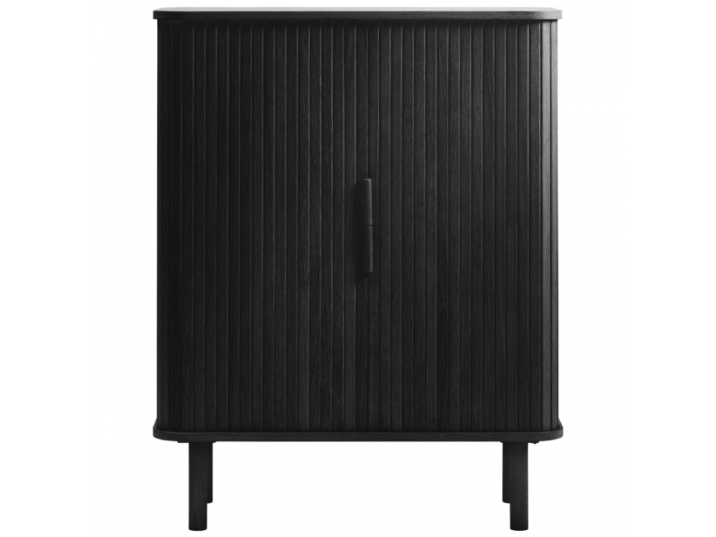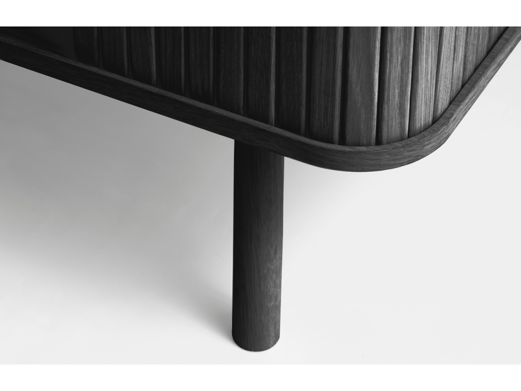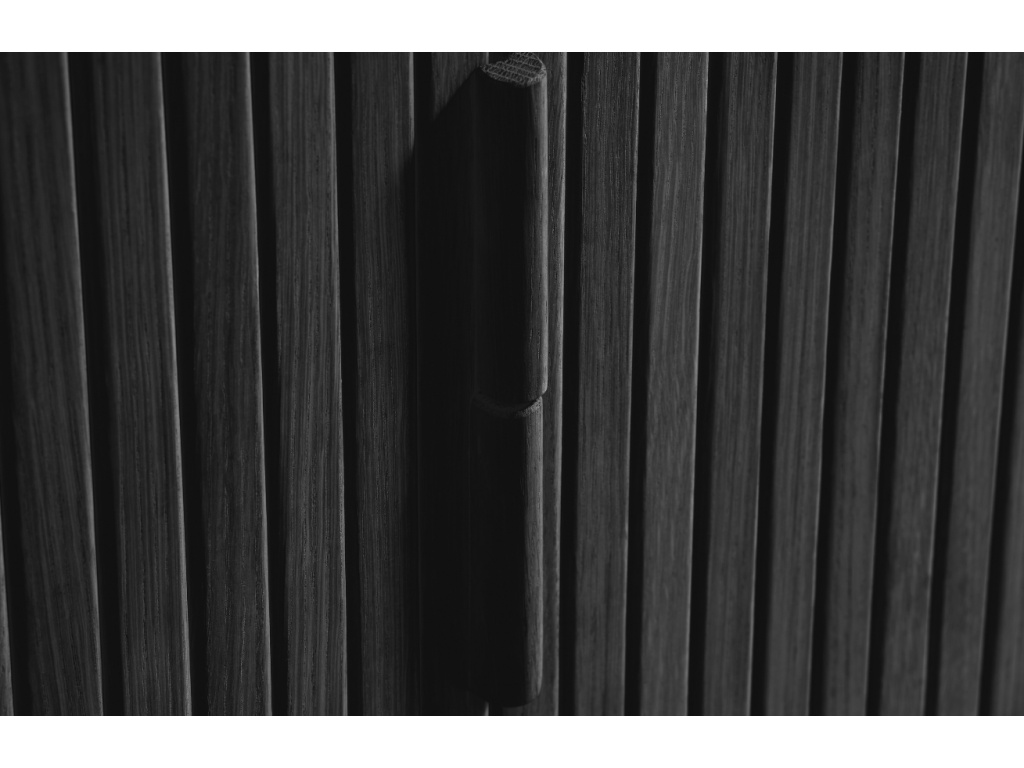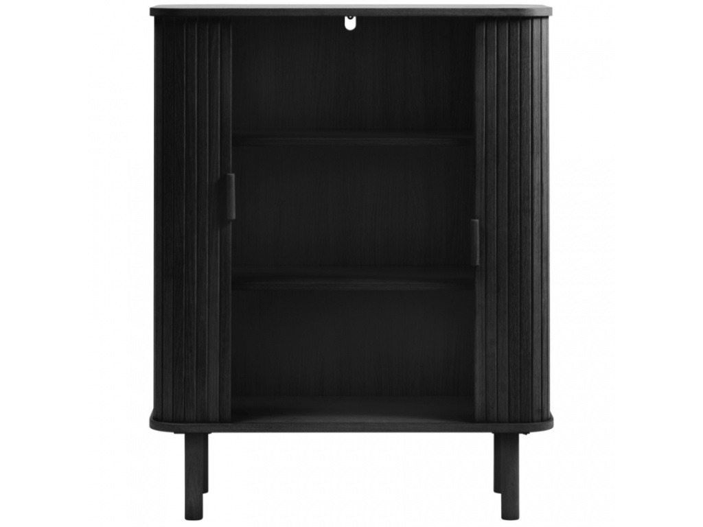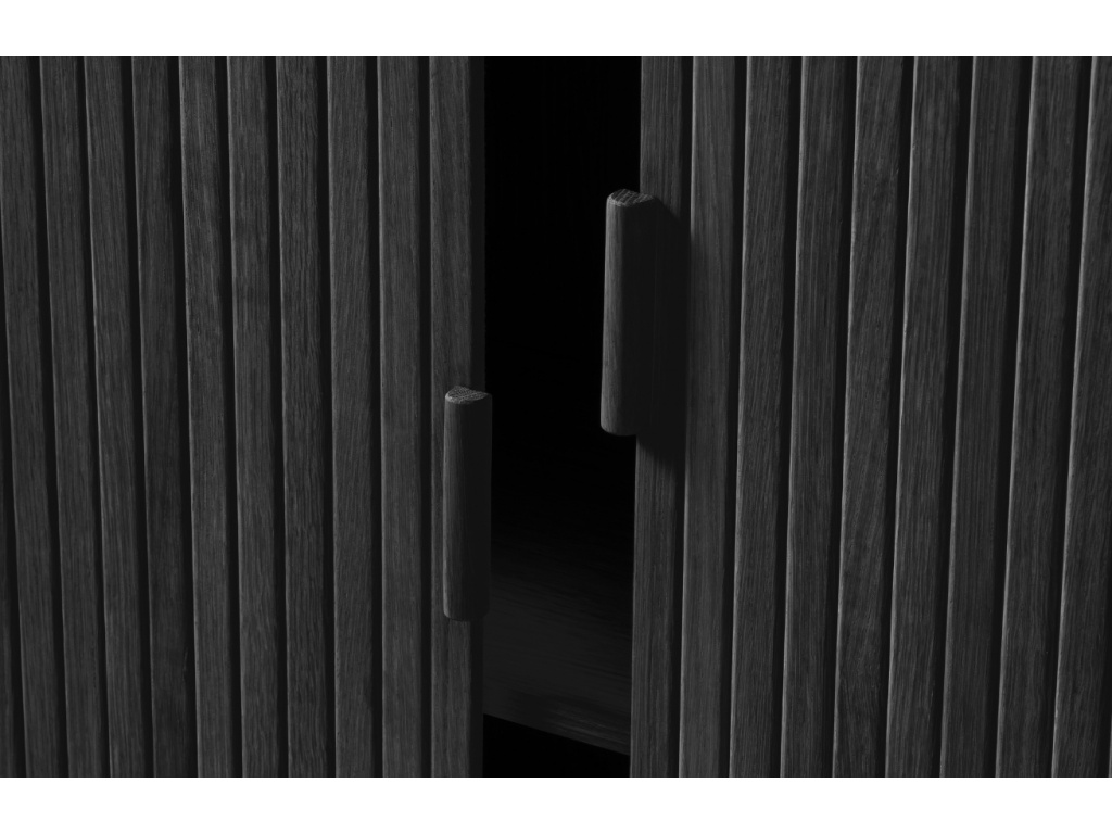 Komoda Cavo od značky Unique Furniture bude estetickým a praktickým kouskem vašeho interiéru. Je vyrobena z masivního dubového dřeva a dubové dýhy v černém provedení. Cavo disponuje praktickým úložným prostorem ve formě tří polic, které jsou ukryty za posuvnými dvířky. Nechte se okouzlit spojením krásy černého odstínu dřeva a jednoduchým funkčním designem s promyšlenými detaily! Designový motiv žebrování podtrhne celkový dojem komody a dodá ji unikátní vzhled.