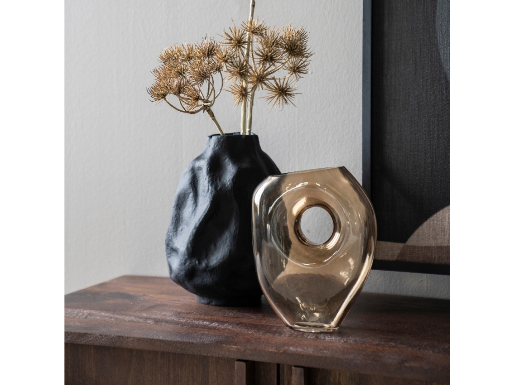 Váza Dent se stane originálním doplňkem, který vnese do vašeho domova jedinečný umělecký prvek. Je vyrobena z lakovaného hliníku s výraznou texturou, která evokuje dojem ručně modelovaného výrobku a dodává jí pocit autenticity. Její nepravidelný tvar vytváří zdání pohybu a přirozené nedokonalosti a činí tak z vázy perfektní designový kousek pro interiéry v boho stylu. Bude vypadat skvěle s jednoduchou květinovou vazbou, nebo samostatně jako stylová dekorace. Váza Dent bude každodenní připomínkou vašeho citu pro detail a design.
