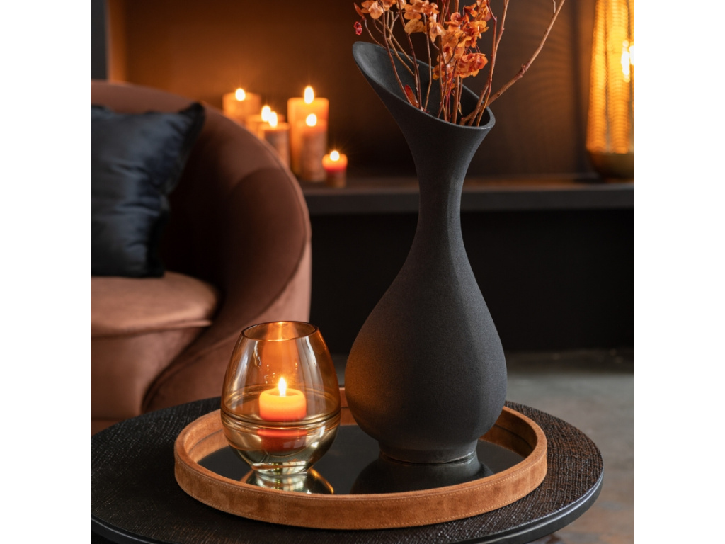 Do elegantní vázy Rutie značky J-Line můžete naaranžovat sušené květiny nebo ji vystavit samostatně. Svým specifickým nadčasovým tvarem je dekorací sama o sobě a bude se skvěle vyjímat v moderních interiérech. Černá barva vázy podbízí k hravému pojetí barevných kompozic buďto s ostatním nábytkem nebo pestrými květinami, které v ní krásně vyniknou. Můžete si ji navíc pořídit ve třech velikostech!