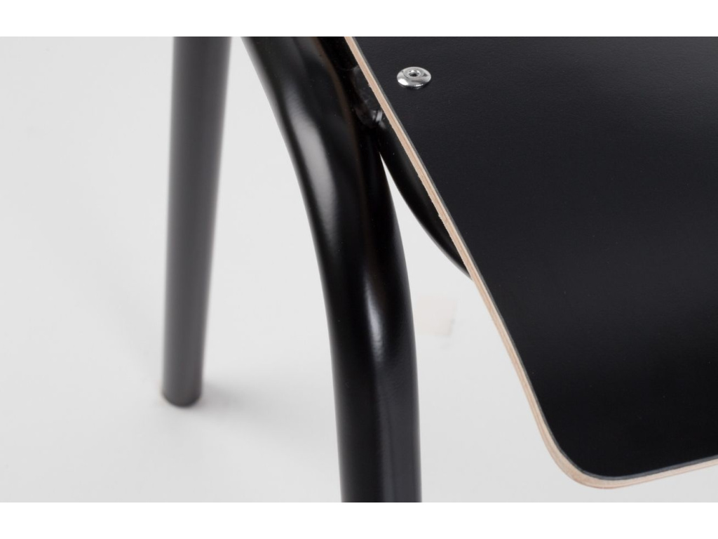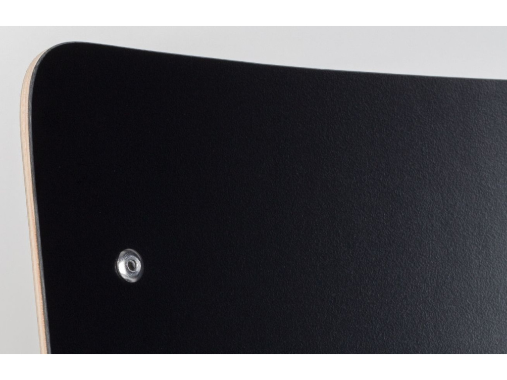 Modernizovaná židle ZUIVER BACK TO SCHOOL v černé barvě se sedákem a opěradlem z překližky pokryté slabým a vysokotlakým laminátem, díky kterému se tato stohovatelná židle vyznačuje vysokou pevností a odolností. Stabilitu celé židle pak zajišťuje pevná ocelová podnož v černém provedení.