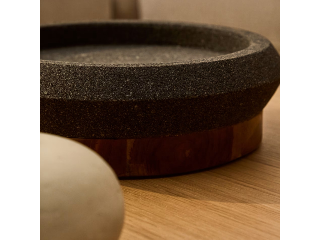 Kolekce Naro od značky Kave Home představuje spojení přírodního sopečného kamene, teakového dřeva a současného designu. Každá mísa vyniká svými jedinečnými tóny a přirozenou odolností. Minimalistické tvary a surový povrch jí dodávají autentický charakter, který se hodí do moderních, industriálních i japandi interiérů. Kolekce nabízí vázy a mísy různých velikostí, které lze mezi sebou kombinovat a vytvořit tak harmonický celek.