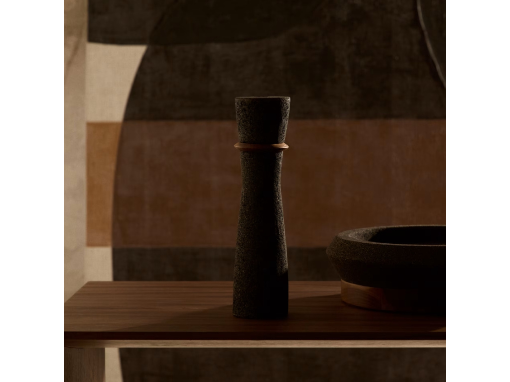 Kolekce Naro od značky Kave Home představuje spojení přírodního sopečného kamene a současného designu. Každá váza vyniká svými jedinečnými tóny, přirozenou odolností a jemným detailem v podobě kroužku z teakového dřeva. Minimalistické tvary a surový povrch jí dodávají autentický charakter, který se hodí do moderních, industriálních i japandi interiérů. Kolekce nabízí vázy a mísy různých velikostí, které lze mezi sebou kombinovat a vytvořit tak harmonický celek.
