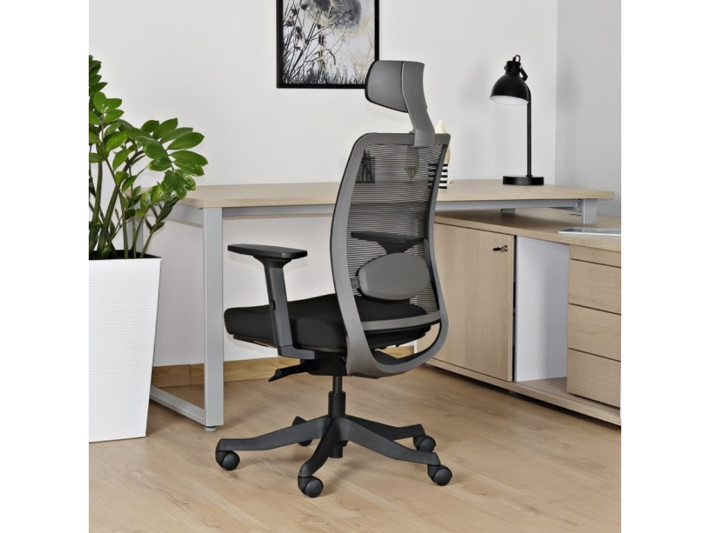Kancelářská židle Angie vám pomůže zpříjemnit hodiny strávené sezením u počítače. Umožní vám přizpůsobit si sezení na míru vašim potřebám – nastavit můžete výšku opěrky hlavy, výšku sedu i hloubku sedu. Nastavitelná je také výška bederní opěrky, díky které předejdete nepříjemné bolesti beder. Židle navíc disponuje 3D područkami, u kterých lze nastavit výšku a také je posunout vpřed i vzad. Opěrka hlavy i opěradlo jsou tvořené síťovinou, která se postará o dokonalou prodyšnost, a sedák je čalouněný příjemnou látkou s vysokou otěruvzdorností. Ať už vám bude Angie dělat společnost při práci, nebo třeba při hraní PC her, vždy bude skvělým parťákem, který vám dopřeje maximální komfort!
