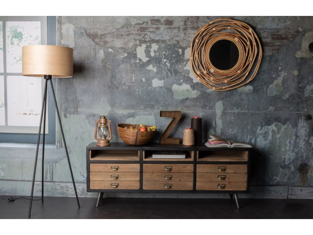 Sol inspirována starými komodami z minulého století v hnědém odstínu nabízí tři velké a tři malé zásuvky a tři otevřené plochy v horní části. Již zmiňované zásuvky jsou vyrobeny z borovicového dřeva a dbají velký důraz na detail v podání kovových rukojetí a jmenovek. Velmi podstatnou součástí komody je rám z dřevovláknitých desek lakovaný tak, aby připomínal industriální kovový nábytek. Stabilitu a elegantní a stylové propojení pak poskytuje mohutná kovová podnož.