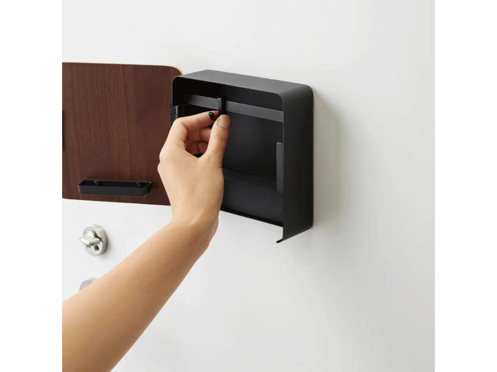 Skříňka na klíče Rin od značky Yamazaki poskytuje praktické a stylové řešení pro ukládání klíčů. Skříňka kombinuje korpus z černě lakovaného kovu s dvířky z překližky, což dodává moderní a zároveň přírodní vzhled. Díky pěti háčkům je dostatečně prostorná, aby pojmula všechny vaše klíče, a zároveň je udržovala na jednom místě. Skříňku lze připevnit dvěma způsoby: pomocí vrutů a hmoždinek nebo magneticky. Díky své jednoduché instalaci a praktickému designu je věšák na klíče skvělým doplňkem do předsíně, kuchyně nebo kanceláře.