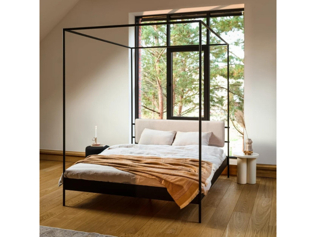 Jedinečná postel Eton II. se pyšní svým precizním zpracováním a moderním designem. Je vyrobena z odolné oceli s práškovým nástřikem v černé barvě, která do každého domova dodá eleganci a styl. Její součástí je také čelo hnědé barvy. Velice zajímavým prvkem postele jsou nebesa, která lze ozdobit textilem nebo světýlky. Doplňte postel také o černé noční stolky a užijte si krásu tohoto designového kousku! Je dostupná v několika různých velikostech a provedeních – jakou si vyberete vy?