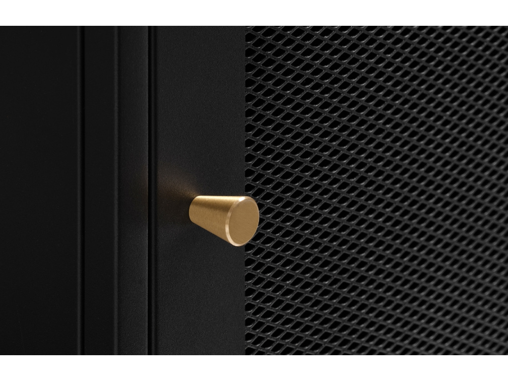 Kovová komoda Carmel od značky Unique Furniture představuje jednoduchý design, styl a praktičnost v jednom kousku. Konstrukce z černě lakovaného kovu zajišťuje dlouhou životnost a také snadnou údržbu. Dominantním a zajímavým prvkem jsou černě lakovaná perforovaná dvířka, za kterými se ukrývá úložný prostor v podobě dvou polic. Součástí komody jsou také 2 otevřené police pro přehledné uložení a vystavení knih, časopisů či dekorativních předmětů. Dvířka jsou ozdobena drobnými zlatými či černými úchytkami, které zvolíte je jen na vás. Komodu Malibu nabízíme ve dvou variantách a můžete ji sladit s dalšími produkty ze stejnojmenné řady.
