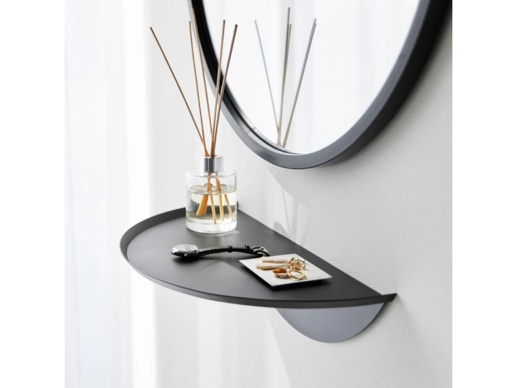 Nástěnná police Tower od značky Yamazaki najde své místo v každé místnosti. V ložnici ji můžete využít jako noční stolek na knihy, brýle nebo telefon. V předsíni skvěle poslouží jako úložný prostor pro klíče, peněženku či jiné drobnosti. V obývacím pokoji nebo kanceláři pak nabízí prostor pro vystavení dekorací, rostlin nebo nezbytností, které chcete mít po ruce. Police je vyrobena z černě lakovaného kovu a díky svému minimalistickému vzhledu se hodí do různých stylů interiérů. Tower spojuje funkčnost s elegancí a dodá vašemu domovu praktický i estetický prvek.