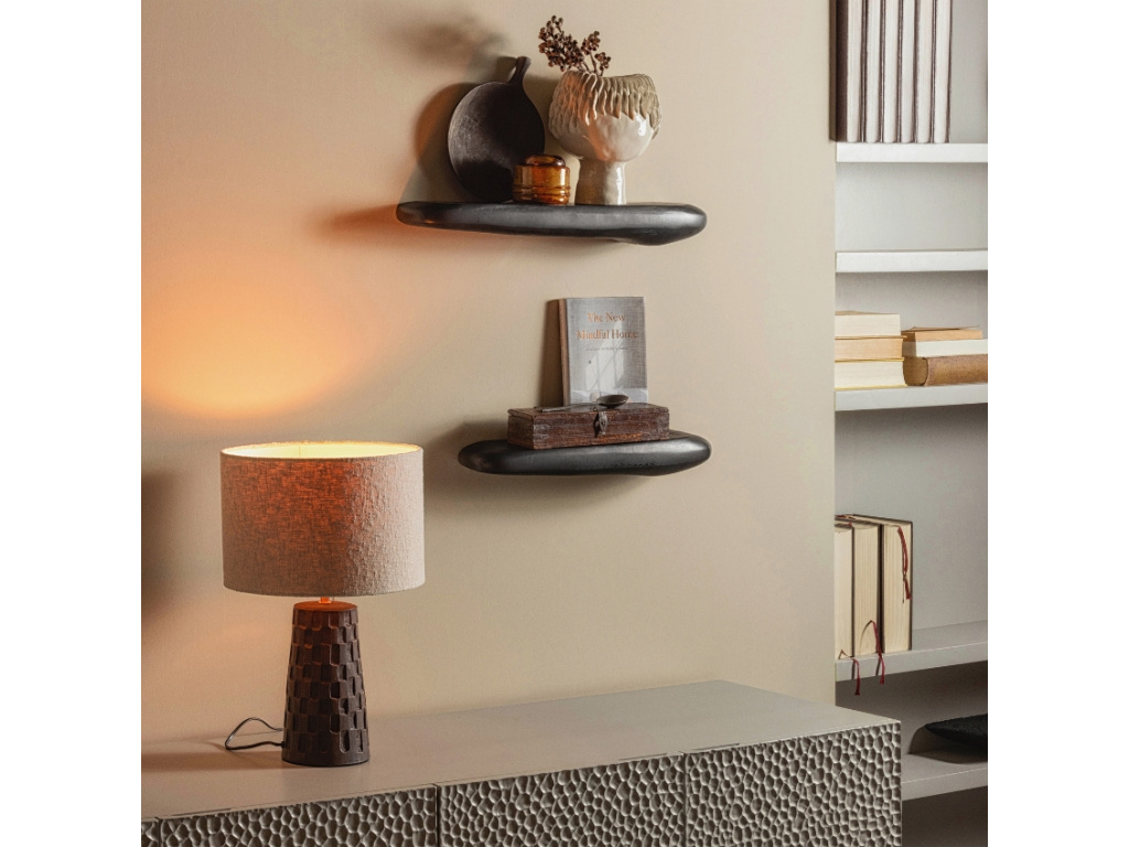 Hledáte-li nevšední nástěnnou polici o menších rozměrech, tak možná bude police Ross od značky Hoorns vhodným kandidátem. Vnese originalitu do každé vaší místnosti díky svému organickému tvaru připomínající zploštělý kámen. Tento stylový designový kousek je vyroben z hliníku, tudíž je lehký, ale zároveň pevný a odolný. Skvěle ozvláštní jinak obyčejný interiér. Vystavte si na ní vaše oblíbené dekorace, rodinné fotografie nebo třeba suvenýry z cest. Vybrat si můžete ze dvou velikostí a nebo rovnou vybavit váš domov celou sadou.