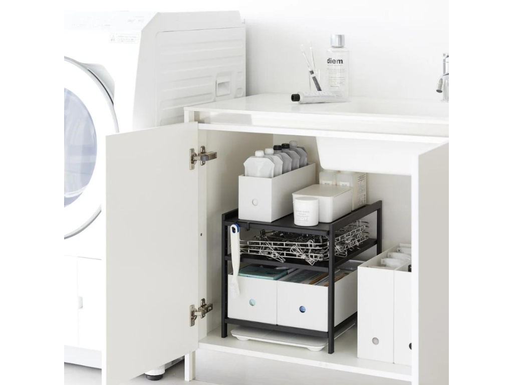 Přídavná police Tower od značky Yamazaki je skvělým řešením pro každou kuchyň, která potřebuje více úložného prostoru a lepší organizaci. Police je vyrobena z černě lakovaného kovu, což zajišťuje její pevnost, stabilitu a dlouhou životnost. Tower nabízí chytré uspořádání s jednou pevnou a dvěma výškově nastavitelnými policemi, které vám umožní přizpůsobit úložný prostor podle vašich potřeb. Součástí police jsou také háčky, na které můžete zavěsit drobné kuchyňské doplňky. Police se snadno vejde pod většinu kuchyňských dřezů a poskytuje dostatek místa pro ukládání čisticích prostředků, houbiček, hadříků a dalších potřeb. Také je vhodná k použití jak ve skříňce, tak i na pracovní ploše.