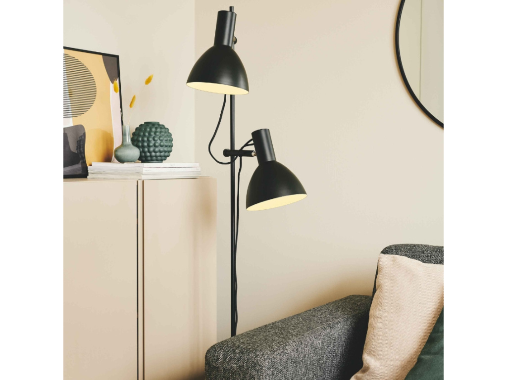 Posviťte si na vše důležité s černou stojací lampou Baltimore od značky Halo Design. Stylová kovová lampa v industriálním stylu se skládá ze dvou posuvných stínidel, díky kterým si můžete jednoduše nastavit směr i výšku světel. To oceníte zvláště při večerní relaxaci u dobré knížky. Vnitřní část stínidel má praktické bílé lakování, proto si můžete užít intenzivní, příjemné osvětlení. Lampu snadno rozsvítíte pomocí vypínačů, které jsou umístěny přímo na stínidlech.