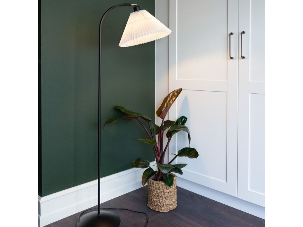 Stojací lampa Halo Design Medina představuje originální designový kousek, který v sobě spojuje moderní prvky s prvky retra. Stínidlo lampy je vyrobeno z odolného plastu a jeho povrch je ozvláštněn jemným nařasením. Velkou výhodou lampy je pohyblivý kloub, díky kterému můžete stínidlo kdykoliv snadno nasměrovat přesně tam, kam potřebujete. Stínidlo je usazeno na kovové podstavě černé barvy a lampa se zapíná pomocí vypínače, který je umístěn na 150 cm dlouhém kabelu.
