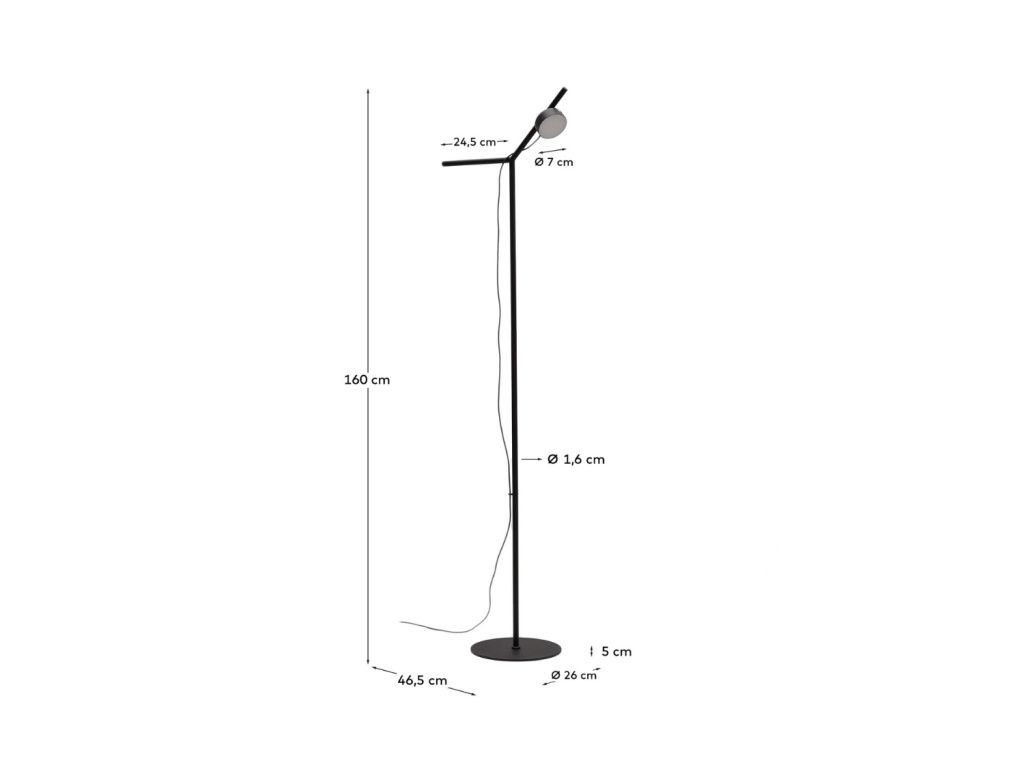 Černá kovová stojací lampa Kave Home Orey 160 cm